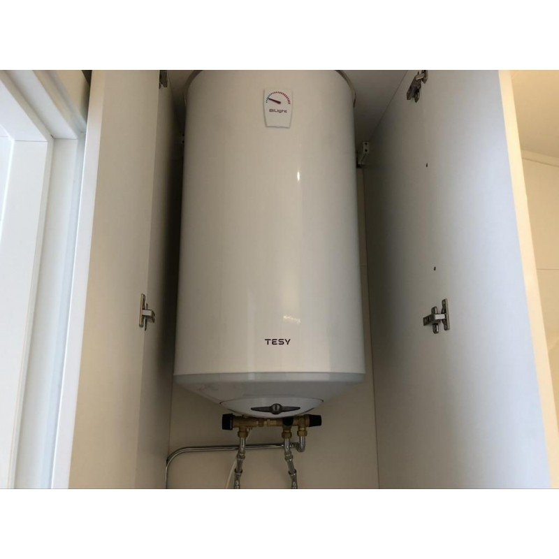 Riscaldamento Efficiente: Pompa di calore aria-aria e riscaldamento a pavimento nel bagno.