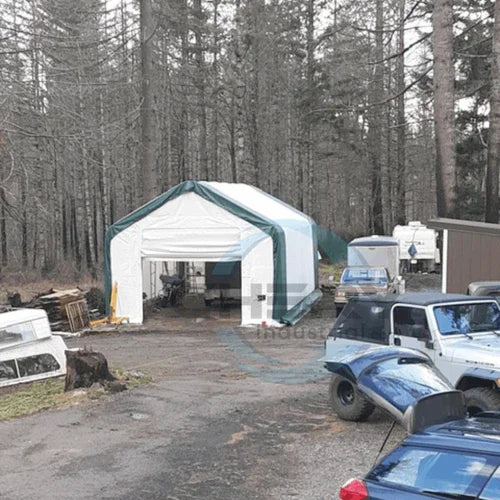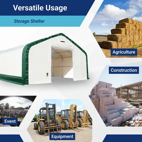 Il capannone di stoccaggio Gold Mountain L20'xL33'xH16' con struttura a doppio traliccio offre una protezione affidabile per veicoli, attrezzature, materiali agricoli e macchinari industriali. Progettato per resistere alle condizioni climatiche più estreme del Nord America, come neve, tempeste, sole, vento e pioggia, garantisce uno spazio sicuro e durevole. La copertura in tessuto PE o PVC blocca i raggi UV e consente il passaggio di luce naturale, mantenendo l’interno luminoso e protetto.