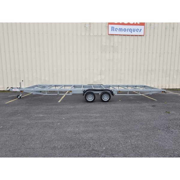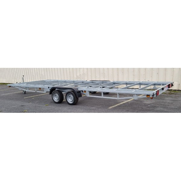 Richiedi un preventivoQuesto robusto rimorchio da 7,2 metri a doppio asse è la base di partenza ideale per costruire la tua Tiny House di grandi dimensioni, chalet o altra struttura mobile. Progettato con un telaio saldato ad alta resistenza e un timone smontabile, offre la massima flessibilità sia in fase di costruzione che di posizionamento. L'intera struttura è costruita con componenti di altissima qualità, come assali e sistema frenante AL-KO, per garantire massima sicurezza e durata nel tempo.