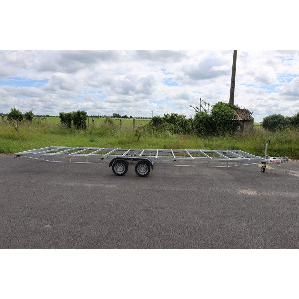 Richiedi un preventivoQuesto rimorchio per Tiny House da 8,4 metri è la base definitiva per chi progetta una casa mobile spaziosa e senza compromessi. La sua caratteristica principale è la configurazione a tre assali, che garantisce una stabilità eccezionale su strada e una perfetta ripartizione del peso, offrendo una base affidabile e robusta per la tua costruzione. Realizzato in acciaio galvanizzato di alta qualità e con un design ottimizzato, è la scelta dei professionisti e degli auto-costruttori che esigono il massimo.